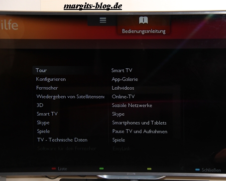 Hallo in meinem ersten Bericht über den Philips LCD 40PFL8007K den Ihr übrigens gerne Hier noch einmal nachlesen könnt,ging es um den Aufbau,den Lieferumfang und die Anschlüsse des Geräts.Danach ging es weiter mit einschalten des Philips und meinem ersten Eindruck von Bild und Ton usw.Das einstellen der Sender als auch das einrichten der Internetverbindung ging recht zügig und mein Mann der das erledigt lobte die leichte verständliche Bedienungs/Installations Anweisungen.Durch das kpl.Menü wird man geleitet und nach wenigen Minuten kann es losgehen.Alles was nachträglich geändert werden muss ist leicht dank integrierter Bedienungsanleitung.(Spart jede Menge Papier)